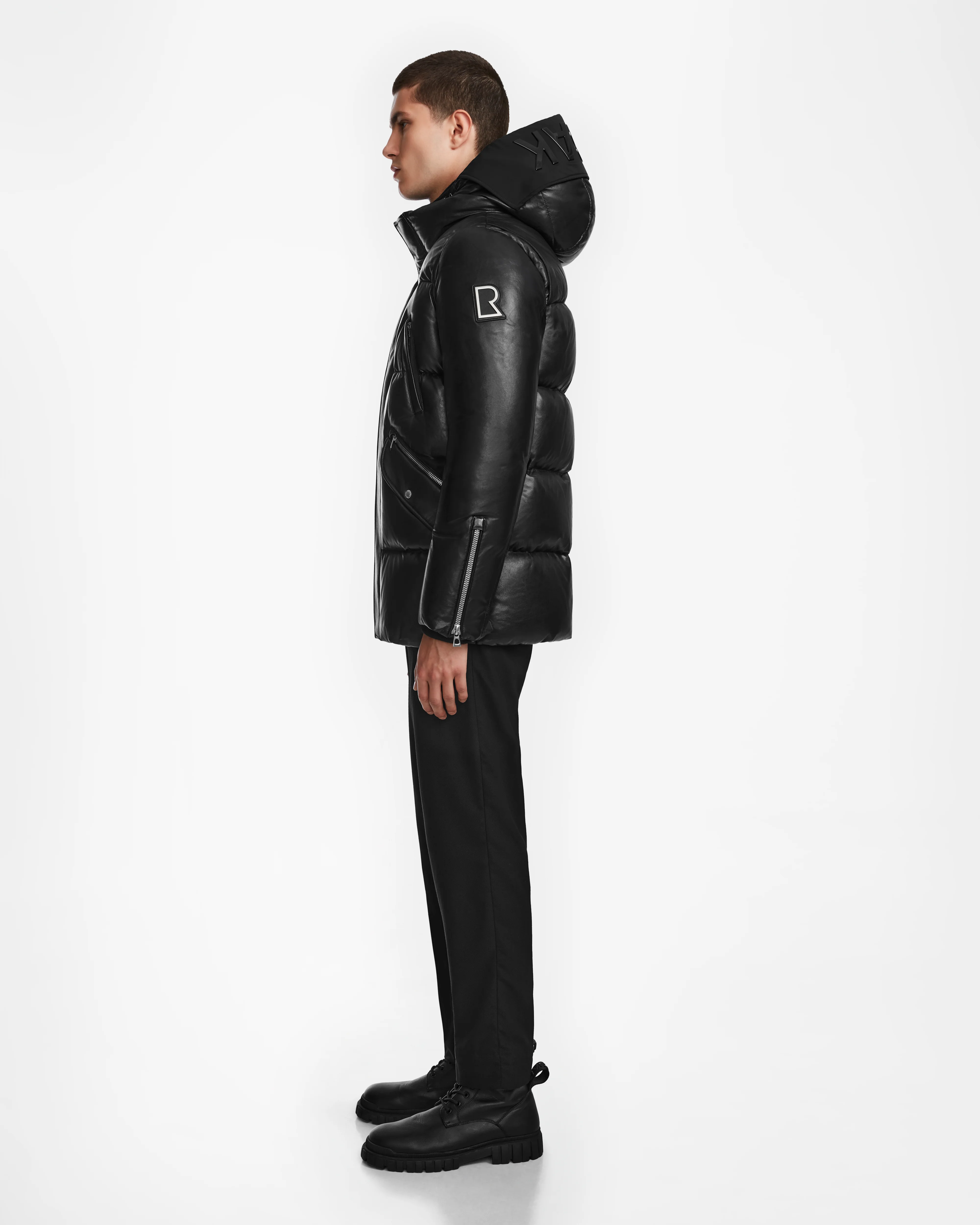 A luxe winter essential, the APOLLO X by RUDSAK is a unisex quilted down parka crafted in weather resistant leather insulated with high-loft RDS down to keep you warm down to -30˚. It has a three-quarter length straight silhouette, a removable hooded dickie with snap-off visor, fleece lined pockets and storm cuffs for additional protection against the elements. It's finished with flap and zip pockets, back vents and zippered expansion at the cuffs. Designed in limited quantities, this luxe staple is an elevated take on winter.