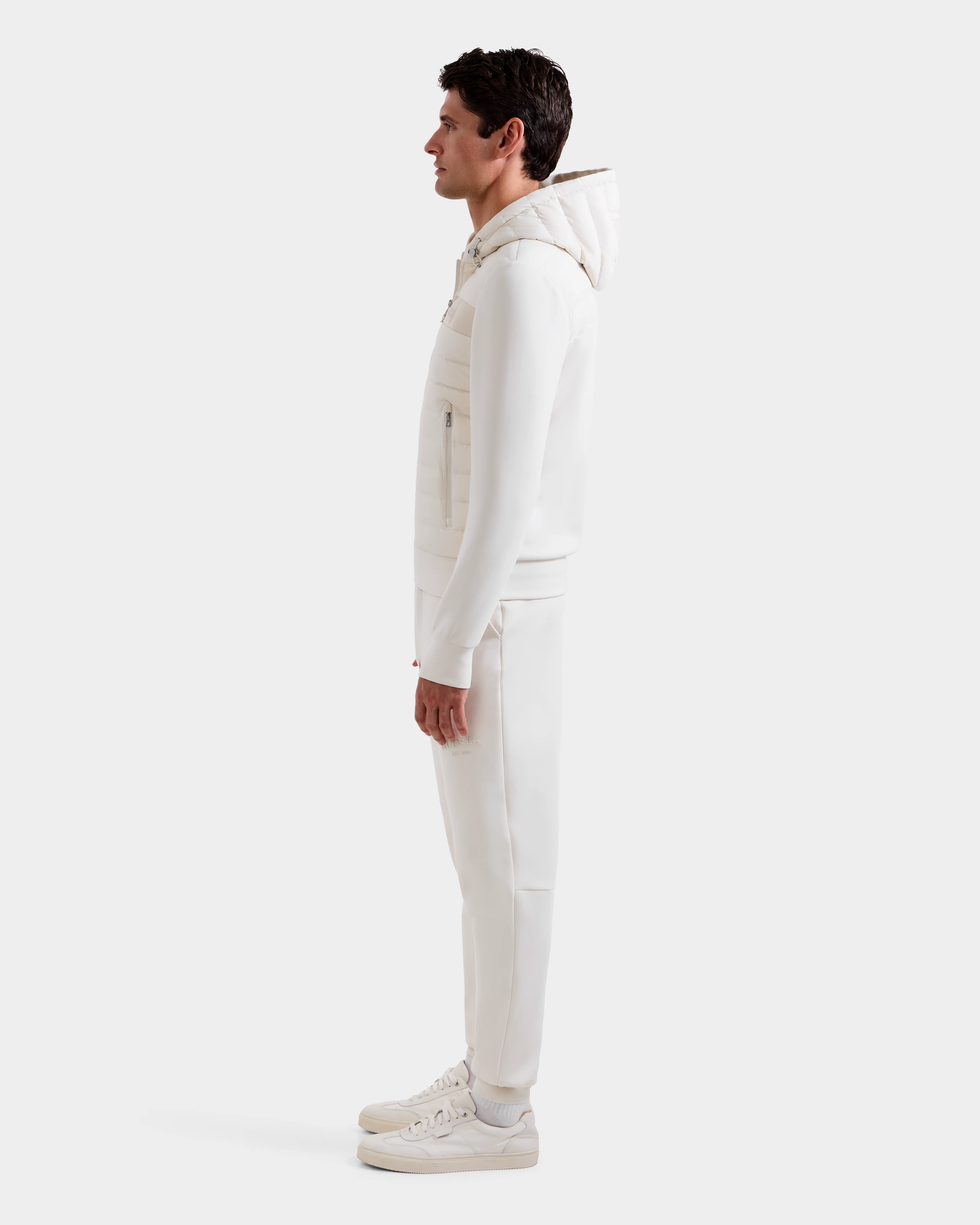 Meet DEE MP by RUDSAK, a men’s lightweight down jacket designed for modern movement. Crafted in a matte finish shell with soft contrast sleeves, it merges athletic ease with urban polish. Sleek waterproof zippers and an adjustable hood provide protection from the elements, while the front features subtle branded detailing for a refined finish. Insulated with high-loft RDS-certified duck down, DEE MP is a transitional staple made for city living and cool-weather travel.