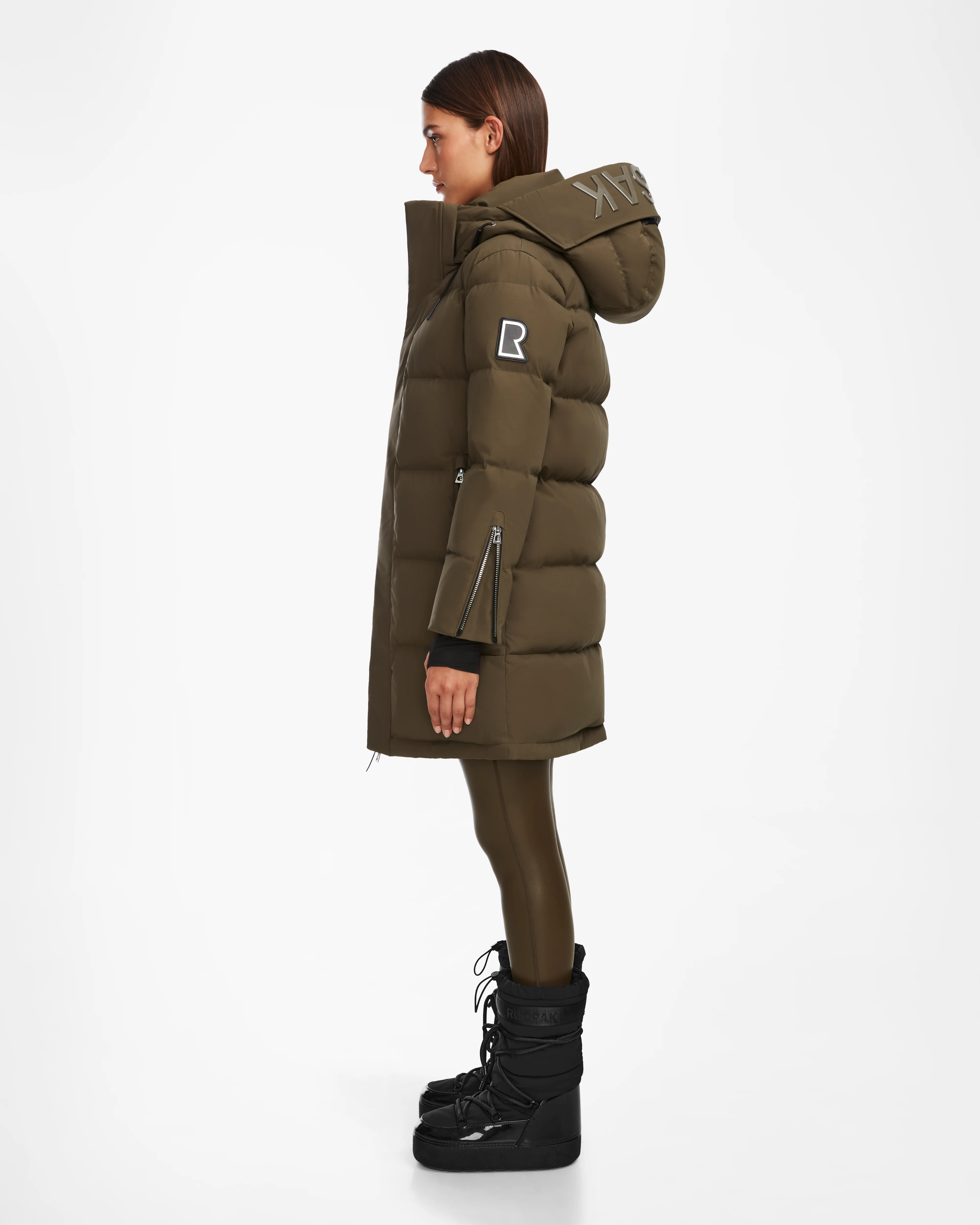 The JOELLE M by RUDSAK is a puffer jacket for women filled with a high-loft blend of responsible and traceable RDS-certified down fill. Designed to keep you warm and dry down to -30˚C, this versatile jacket is cut from stormshell fabric with a semi-gloss lining and features a removable hood, neoprene storm cuffs and mesh eyelets under the arms for added breathability. Branded backpack straps make hands-free carrying a breeze, while recycled leather trim and waterproof zippers give the look an weather-ready edge.