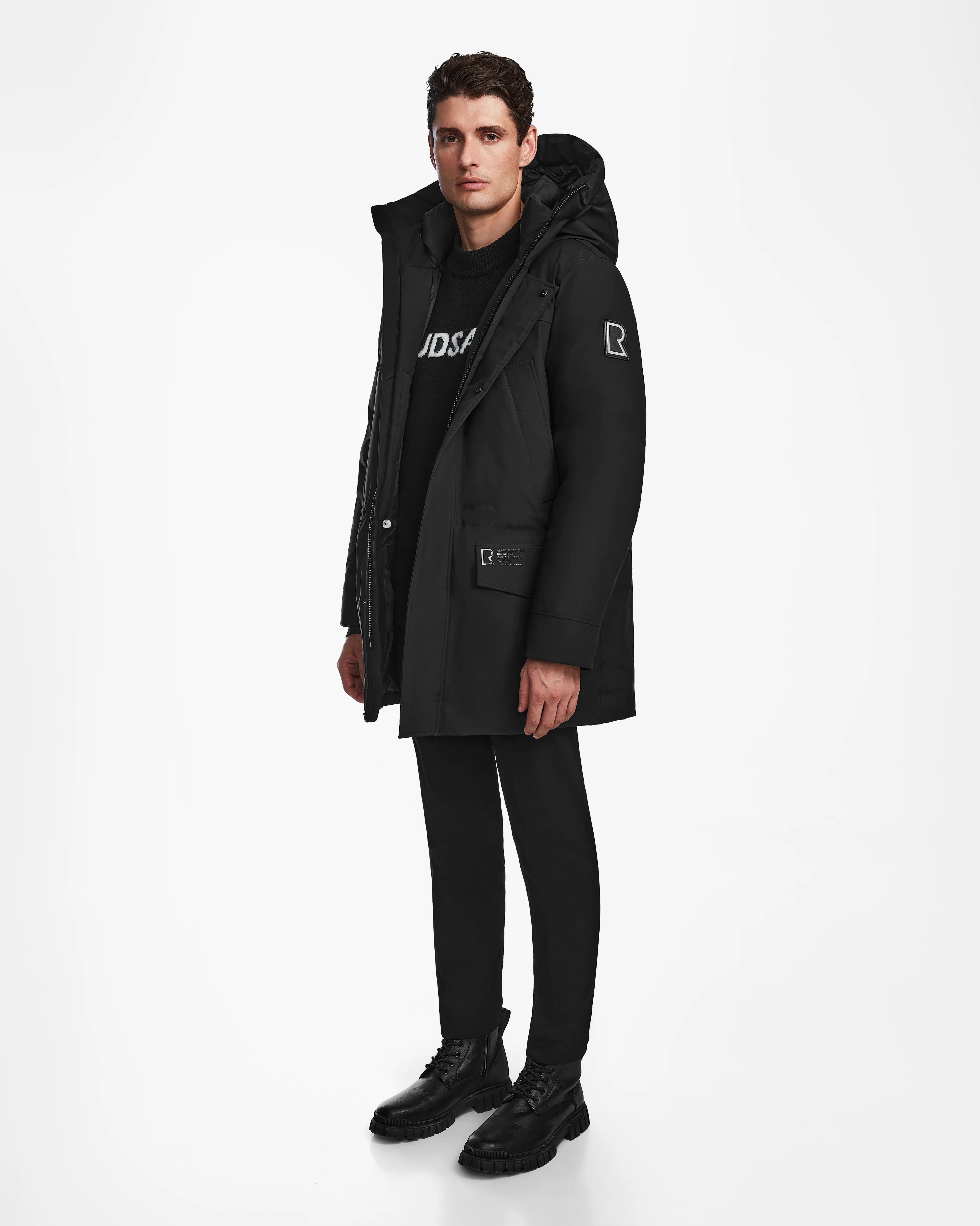 Take on winter in the LANDON by RUDSAK, a classic mid-length parka for men with a straight fit. Designed with a weather-resistant exterior and features like a fixed hood with adjustable draw cords, a protective storm placket with snap buttons, and mesh eyelets for breathability, this parka has what it takes for frigid days. It's center front two-way zipper offers flexibility, while various pockets provide ample storage and are fleece-lined for extra warmth. Bonus interior chest pockets offer extra storage, and removable backpack straps make it perfect for life on-the-go. The LANDON by RUDSAK combines everyday functionality and a classic fit, making it a must-have winter essential.
