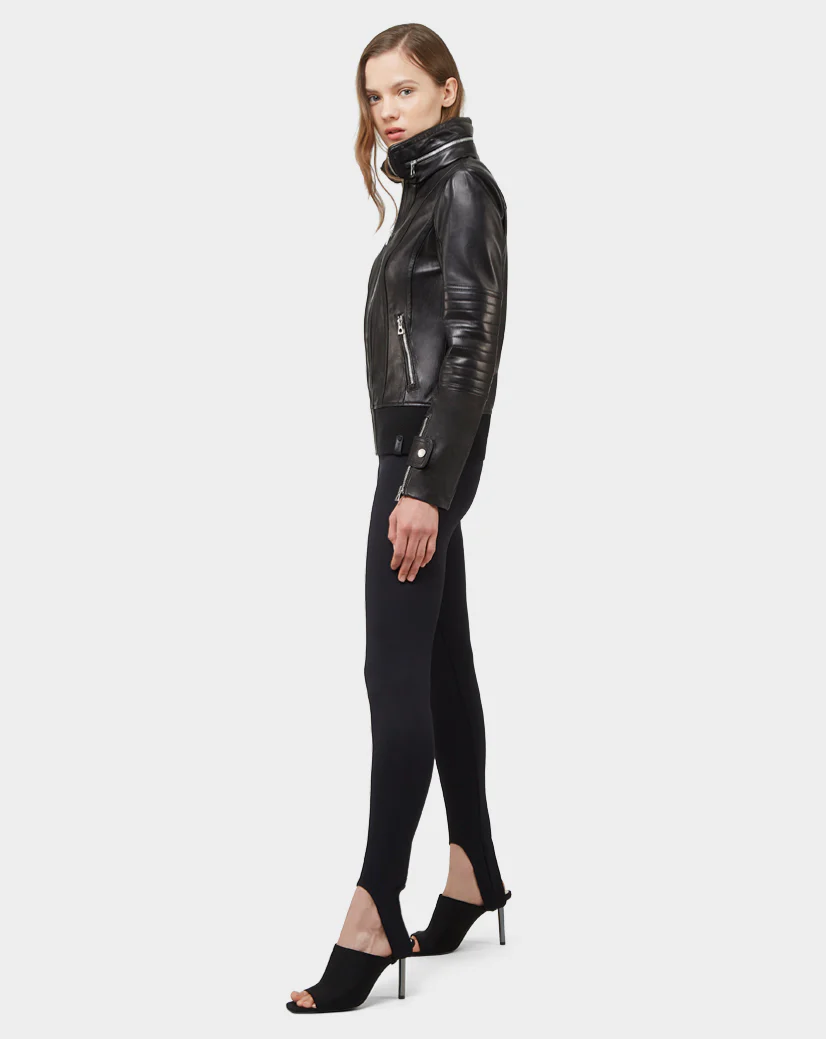 A RUDSAK classic, TISHA is a must-have fitted supple lamb leather jacket. This moto-inspired bomber jacket features a high neck collar with a zippered lightweight hideaway hood. Zippered pockets adorn the front, while zippered sleeve openings feature a fold-over snap closure. This wardrobe essential is a layer that will take you throughout the seasons seamlessly.
